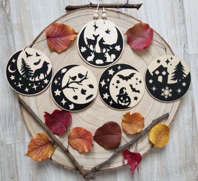 Mignonne petite décoration en bois disponible sous plusieurs formes : seule, à accrocher au mur grâce à son attache, à poser sur son chevalet ou en guise de magnet sur le frigo.