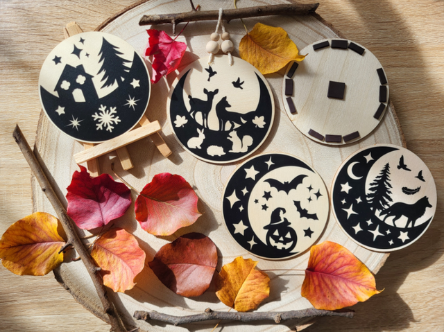 Mignonne petite décoration en bois disponible sous plusieurs formes : seule, à accrocher au mur grâce à son attache, à poser sur son chevalet ou en guise de magnet sur le frigo.